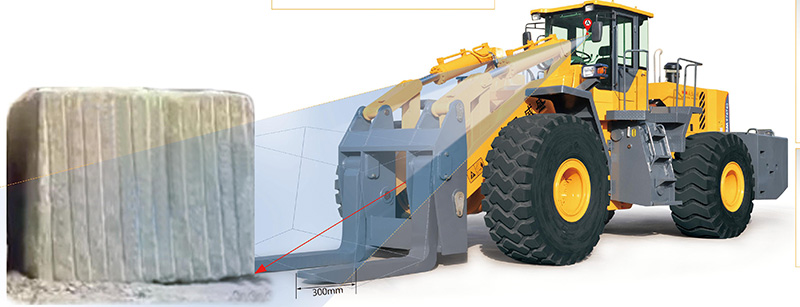 wheel loader WSM976T42 The driver A point is the height of 700mm away from the seat (normal sitting position). When the fork is flat ground,horizontal, we can see the fork and fork tip fork into 300mm way.In the lifting process, the driver can see the tip and fork, it is safe to work.wheel loader WSM976T42